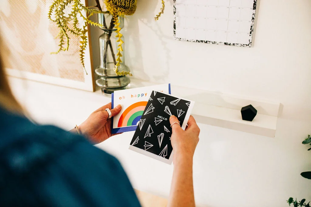 My base colour here is the navy typographic ‘anything’ screen print by Tom Pigeon. I’ve added lots of neutral toned products to compliment the navy, like the cork clock and pin board calendar.